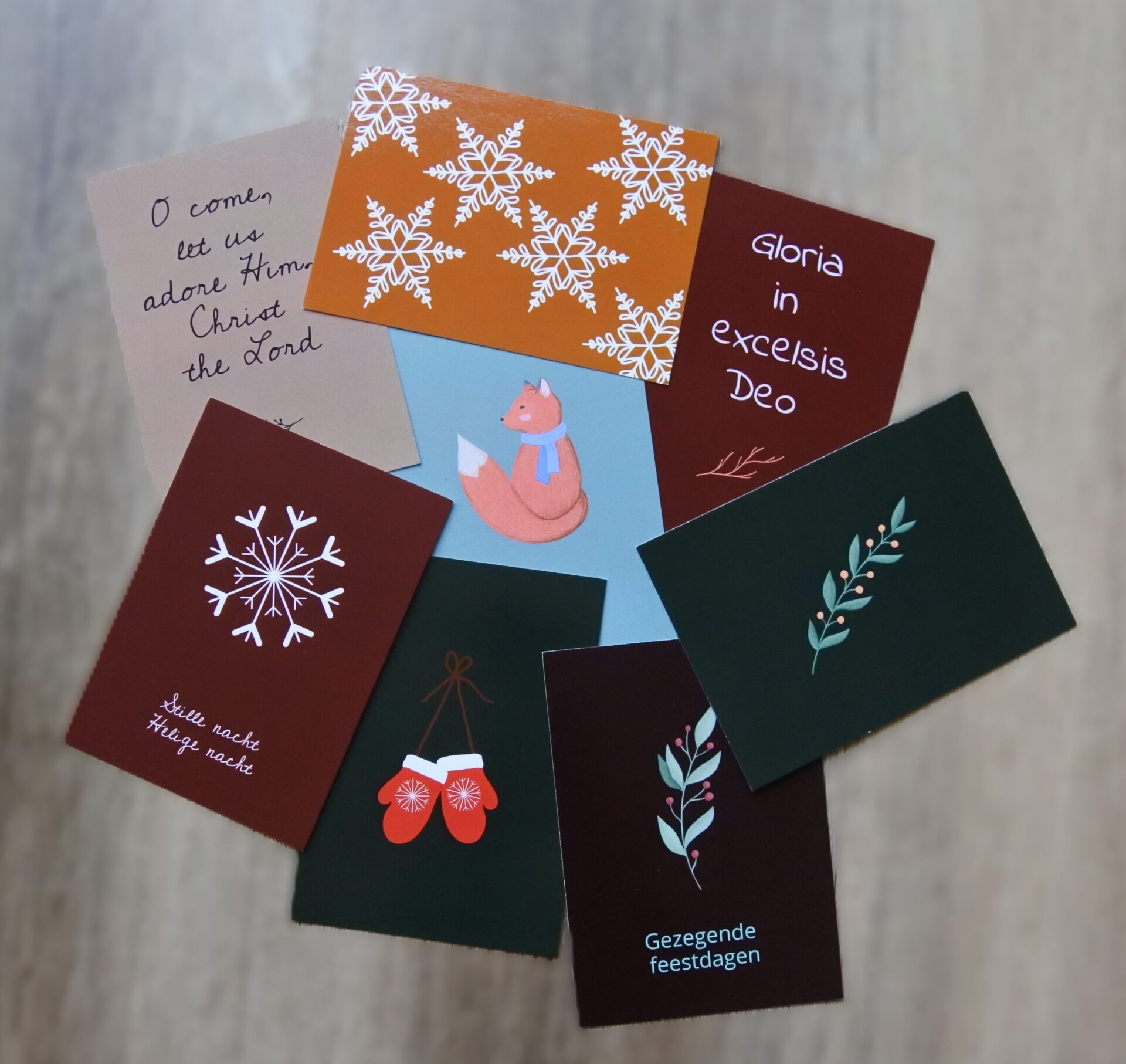 Een mooi pakketje van 8 kerstkaarten en/of winterkaarten! Ze bevatten verschillende kleuren en verschillende lay-outs.